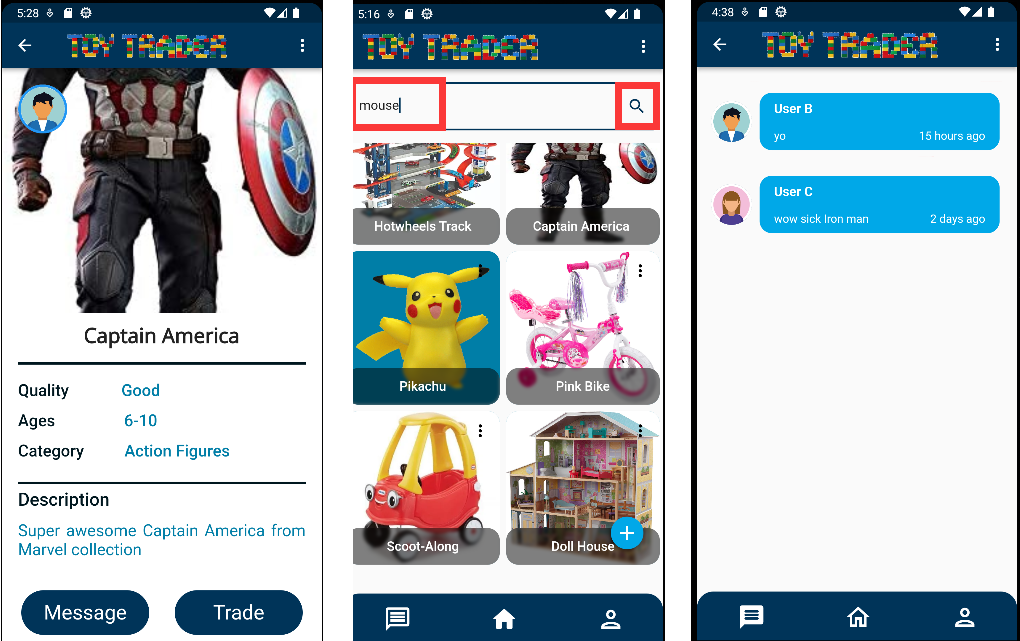 Toy Trader is a mobile application developed for a client using Dart and the Flutter framework. I collaborated in a team of 7 as a full stack developer in which I managed the database and created UI elements.